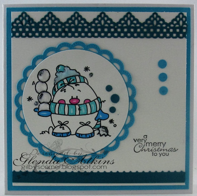 Another entry for the Bugaboo Christmas in July 2016 Challenge. Again a little late, oh well life is busy. This time I used "Eggbert' as my image. He is always adorable and can be found on the Bugaboo site. In real life the colour contrast is not near so identifiable as it is on the picture I took. I used Tempting Turquoise for the border around the circle and it matched the coloured image's scarf quite nicely. Again 'Oh Well' :o)!